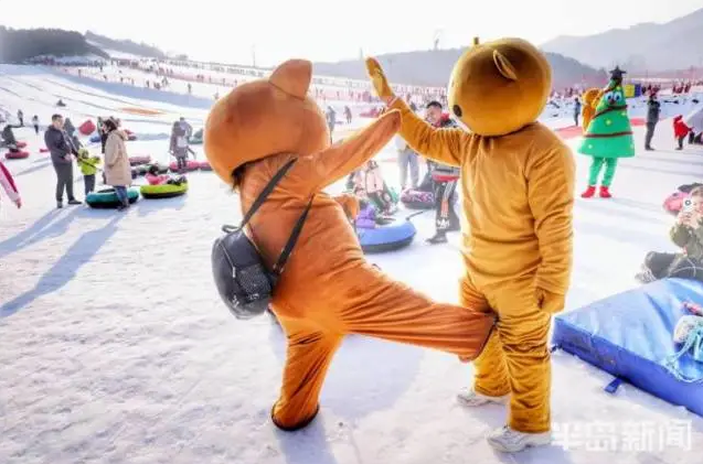 藏马山滑雪场是冬季不少自媒体网红的打卡地,当天正赶上“冬游青岛·度假藏马”系列活动,又恰逢周末,滑雪场里人潮汹涌。张大胆开心熊、明白二大爷、郝开心、熊火火、77i逛吃、青岛小胖胖等网红们来到滑雪场一试“身手”。